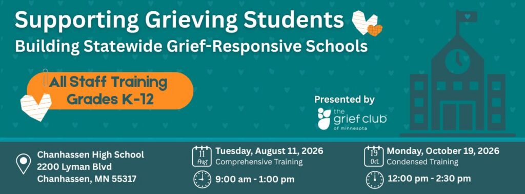 Participants will receive a certificate of attendance with documented contact hours. Approval for continuing education credit is determined by individual licensing boards; participants are responsible for submitting documentation. The Grief Club of Minnesota does not guarantee CE approval.