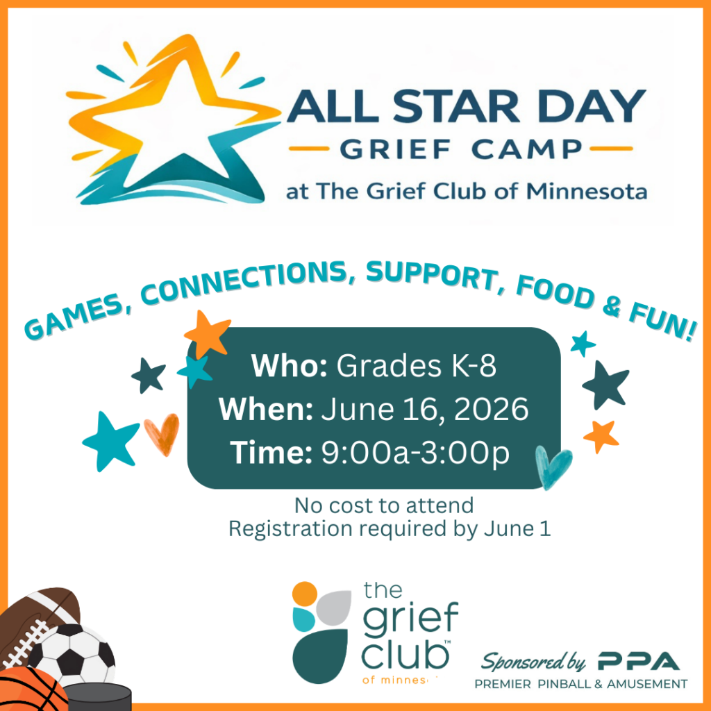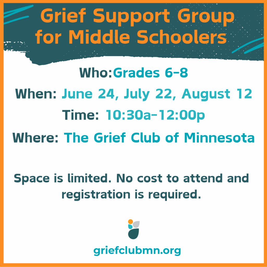 This summer, The Grief Club of Minnesota invited children and teens in grades K-12 to join our no-cost grief support groups. Led by caring grief counselors, these groups offered opportunities to make memories, build connections, and find comfort with peers who understand. Through creative activities and heartfelt conversations, kids honored and remembered their loved ones. Together, we transformed memories into moments of healing and hope. We can’t wait to do it again next year.